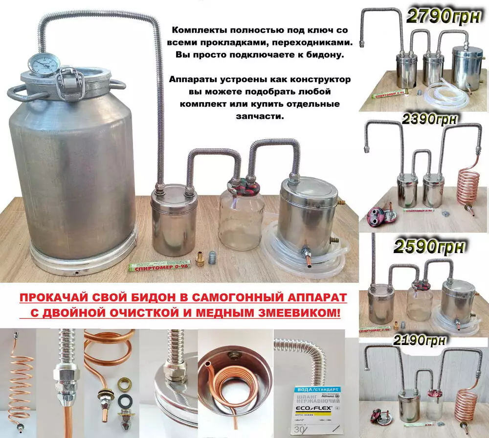 Аппараты устроены как конструктор, вы можете подобрать любой комплект на нашем сайте https://samogon.net.ua